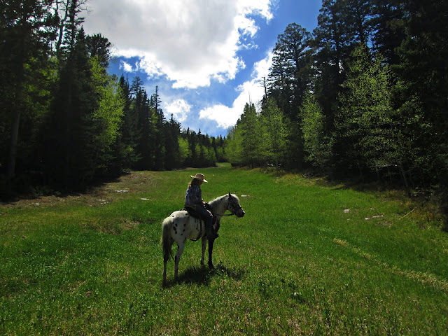 Riding south through the thick scrub oak and mountain mahogany.