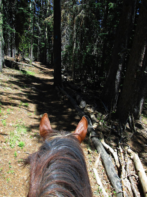 This trail was a bit overgrown and had several fallen trees blocking the path, so we had to do some bushwhacking. Not my favorite thing to do, but an excellent training experience for you and your horse, because your horse has to be patient and trust you to find the safest route through the forest.